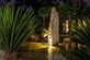 The cooling misting unit also provides a visual element to the landscape as well as cooling the space during hot weather. Sound in the landscape adds to the atmosphere whilst garden light creates a whole different mood and look to the landscape at night. The rear of the garden is formalized with an interporation of landscape printed on to a glass art panel which frames the show gardens backdrop.
