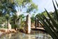 Our design is representative of a landscape that focuses on the centrally placed yellow granite boulder. The design line radiates out from the centre of the boulder to the indigenous glass art panels set within the water of the circular pond, semi circular deck and pergola providing relaxation place of visual interest Australian native and exotic planting set amongst these elements giving an arid planting feel to the outer perimeter of the landscape and merging into a more tropical lagoon planting theme closer to the water body.