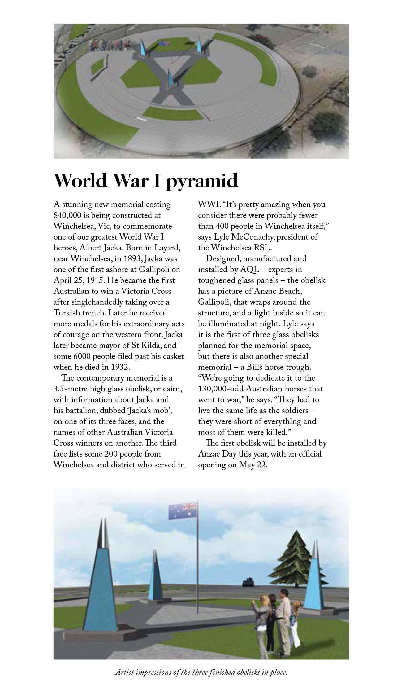 AQL has recently design and constructed stage 2 and 3 of the Winchelsea war memorial after extensive consultation with local residents, invested parties and local government.