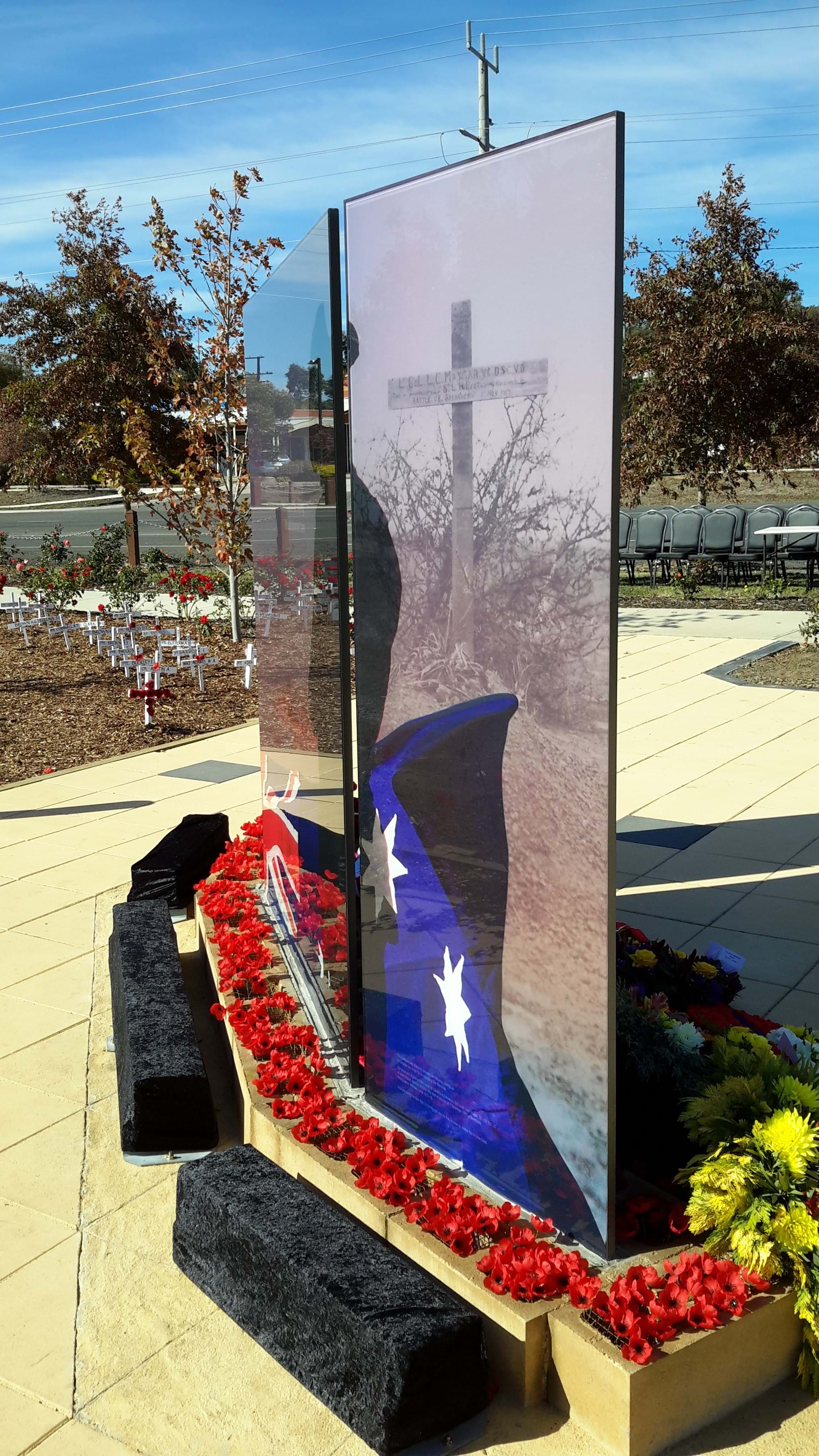 The three angulated glass art panels emanant a powerful story for those who gave the ultimate sacrifice for the country and who serviced their country.