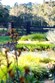 This one part of the garden is a natural flowing creek and billabong gathering water run off from the upper areas of the property and paddocks, the water flows down through the creek filled with semi aquatic plants that look ascetically pleasing, provide a natural area for habitat as well as filter and clean the water. Complete with recycled railway sleeper bridge, large rounded river pebbles, logs and aquatic plants the garden is a wonder view as you enter and exit the property. A popular water hole for local fauna attracting birds, frog’s dragon flyers and may other critters. The rustic garden art provides interest and focal points.