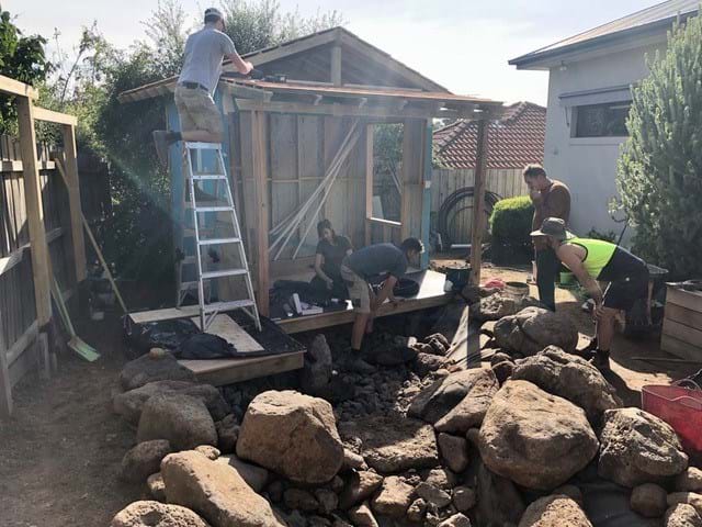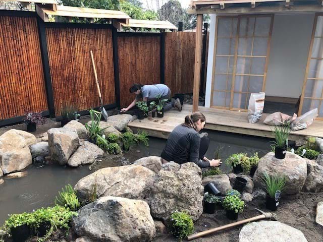 This garden was an uninteresting backyard with a few trees and shrubs and a couchy grass lawn. Which has now been transformed into to a water garden oasis complete with Japanese tea house over hanging a water cascading Australian billabong. Complete with aquatic plants ,fish and ornamental sculptures the garden has transverse into its only little eco system.