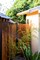 Decorative bamboo screen panels create the back drop to a mix of exotic and Australian plants. The outdoor shower is a cool and reviltizing element within the space. A mix of natural stone and timber compliments the planting and built elements. The dark green/maroon foliage of the espaliered forest pansy tree contrast with the lime green leaves of the Japanese maple tree. Relax on the teahouse deck and enjoy the soothing sound of running water.