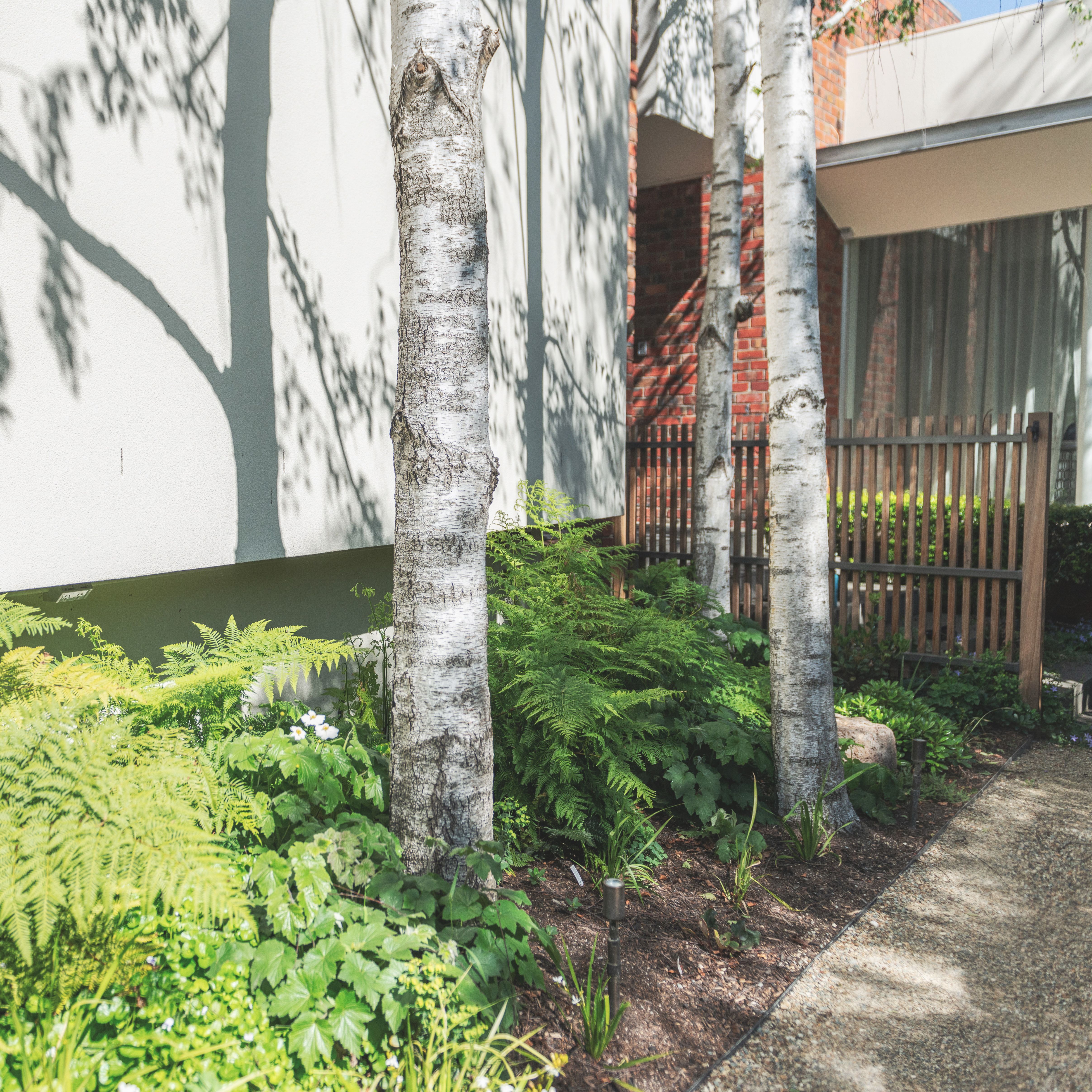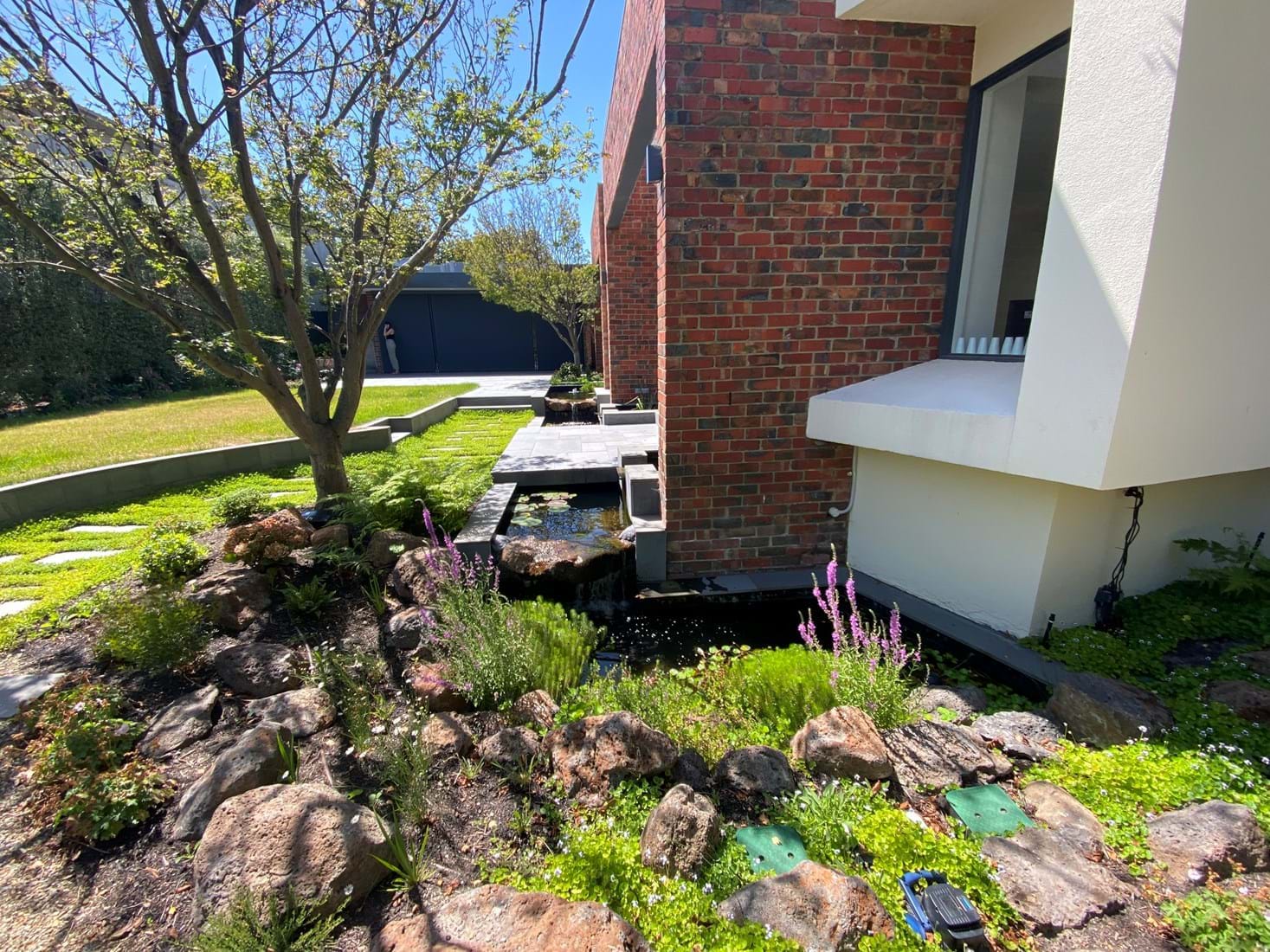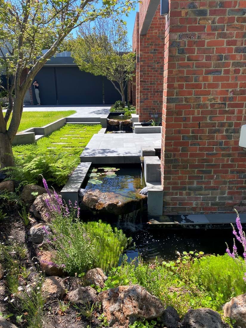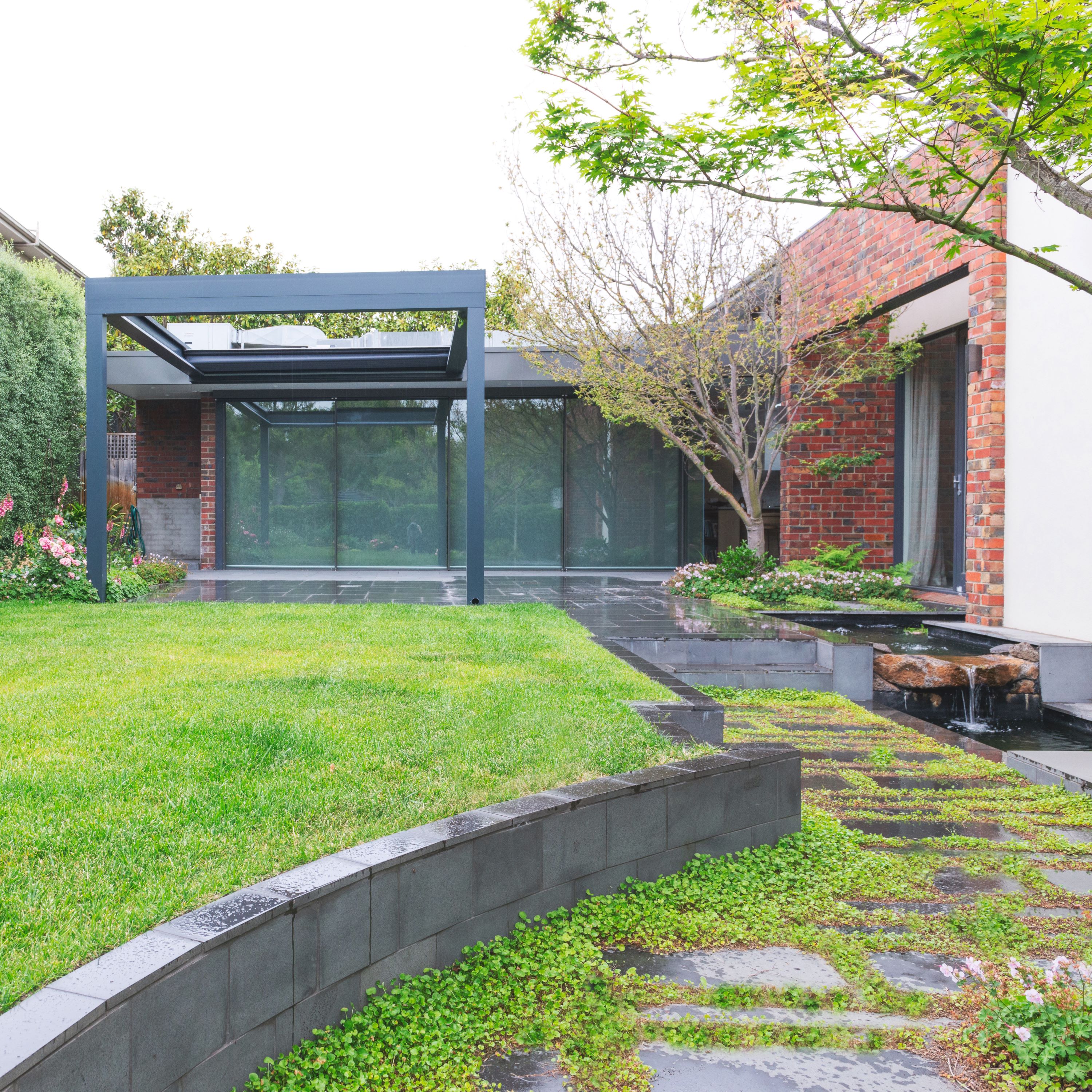 The garden and courtyards were designed to complement and reflect the contemporary architectural style of the home by Amnon Weber Architecture. The landscape design enhances and builds upon the architectural features and design elements of the structure to seamlessly integrate the indoor and outdoor spaces