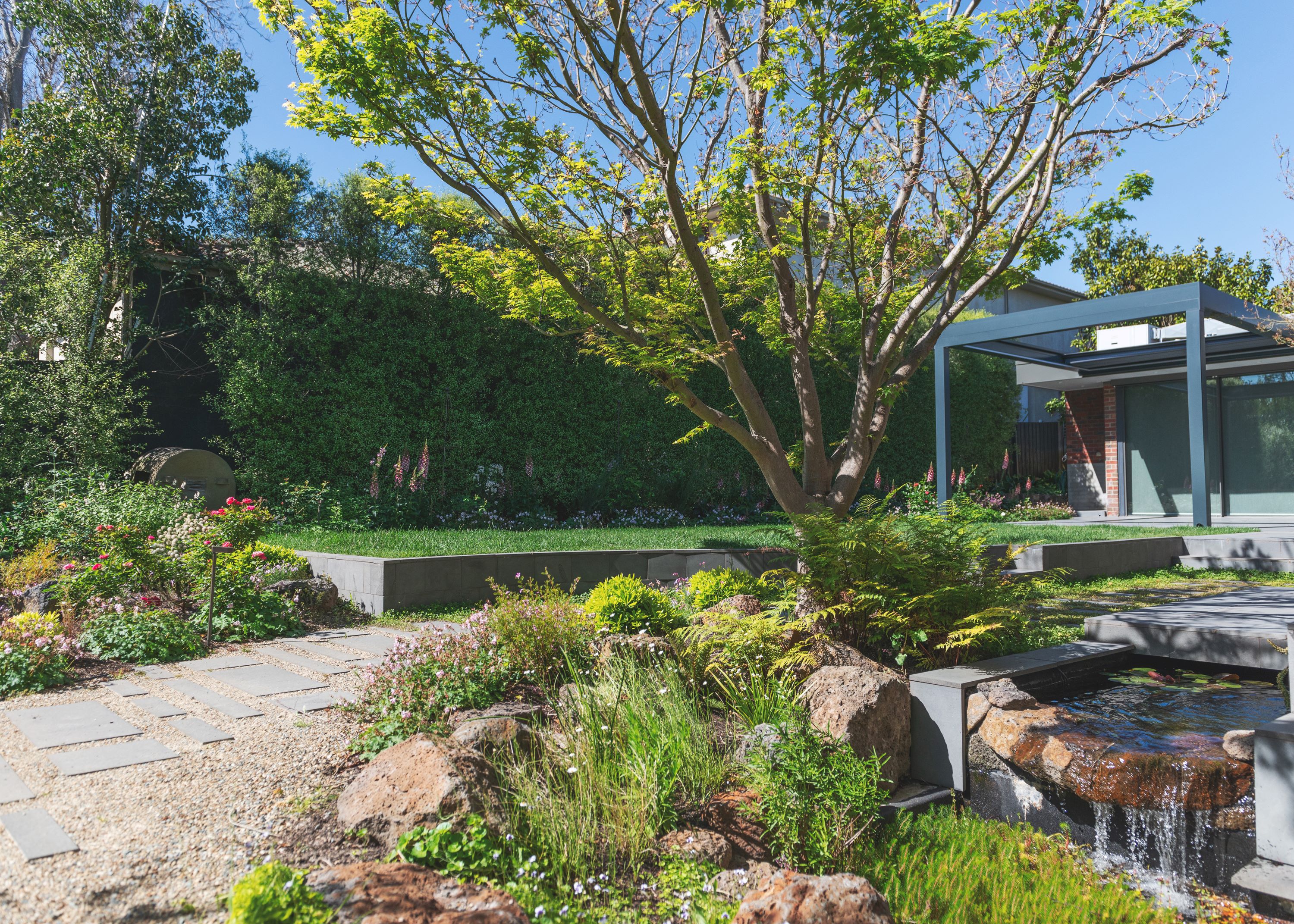 The overall planting scheme for the garden aims to combine Australian native flora with exotic species. The use of various plant species create floral blooms across all seasons, maintaining visual interest and biodiversity within the garden.