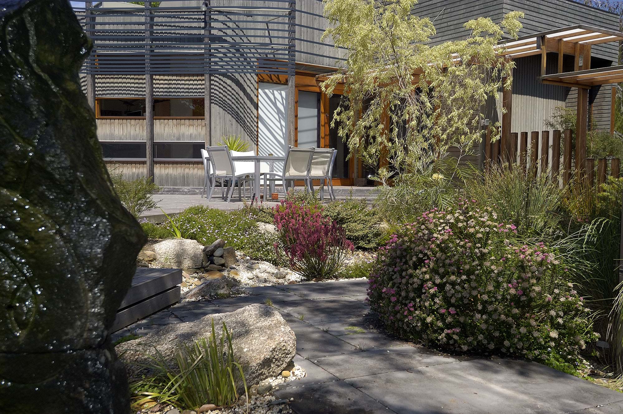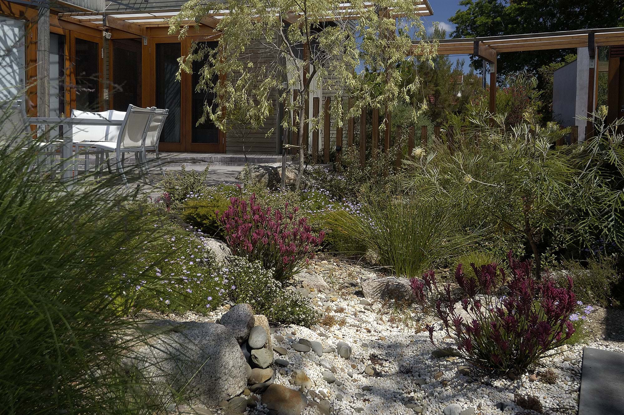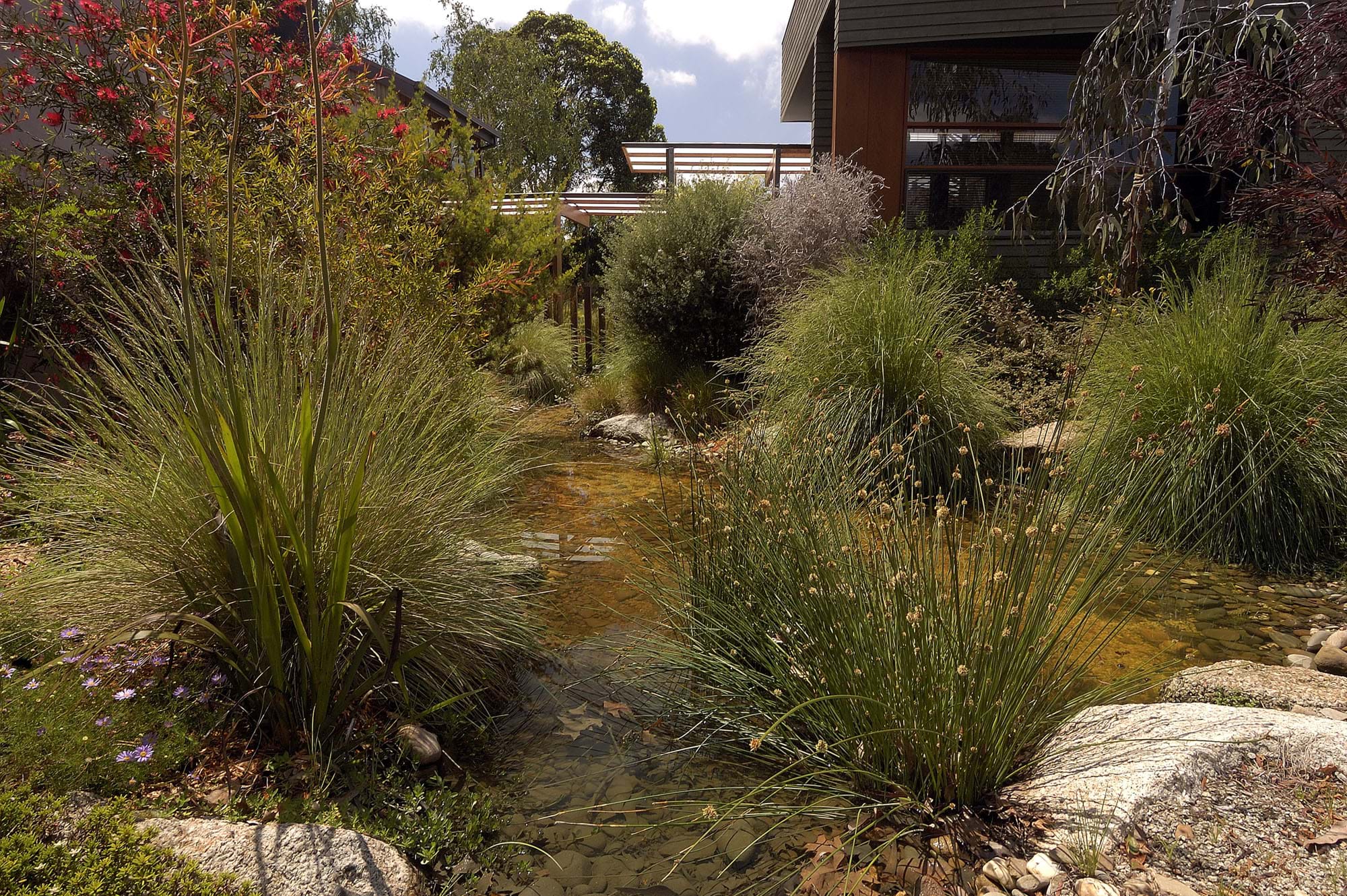 One clients brief was to create an Australian native garden, low maintenance, adopt a planting palette that encourages local birdlife. Design a naturally appealing lap pool with organic and sustainable materials that compliment the architectural style of the Dwelling and work studio.